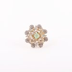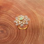 Kaakshi Jewellery – Elegant American diamond ring with a floral design, shimmering white stones, and a graceful green center accent