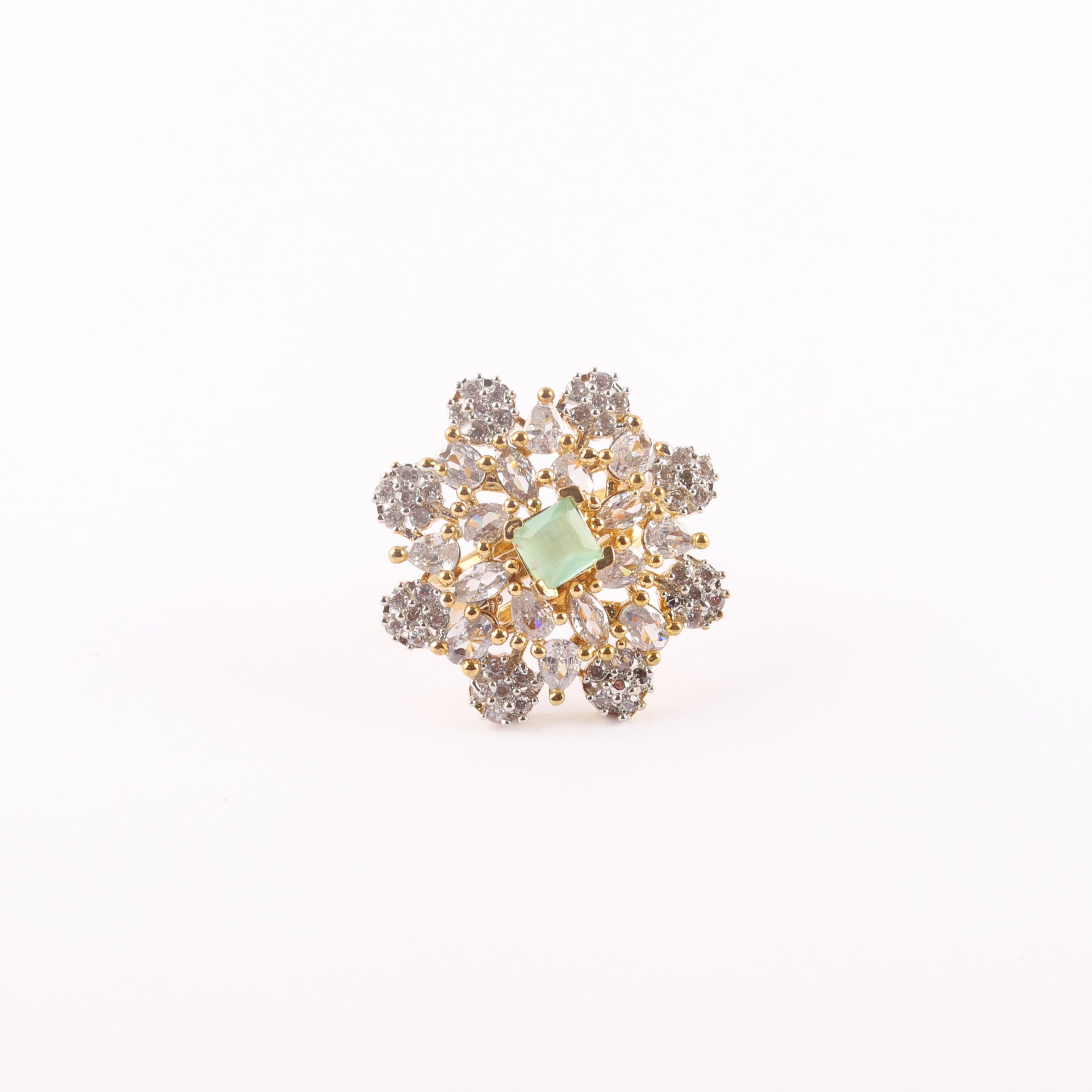Crafted with precision and attention to detail, the ring features a premium gold-tone finish that complements both traditional and modern outfits. Its statement look makes it ideal for festive occasions, weddings, parties, and celebrations, while still being refined enough for special everyday wear. Lightweight yet eye-catching, it offers comfort without compromising on style.