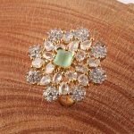 a graceful floral design adorned with sparkling American diamonds and a subtle green center stone, crafted to add elegance and brilliance to both festive and everyday looks.